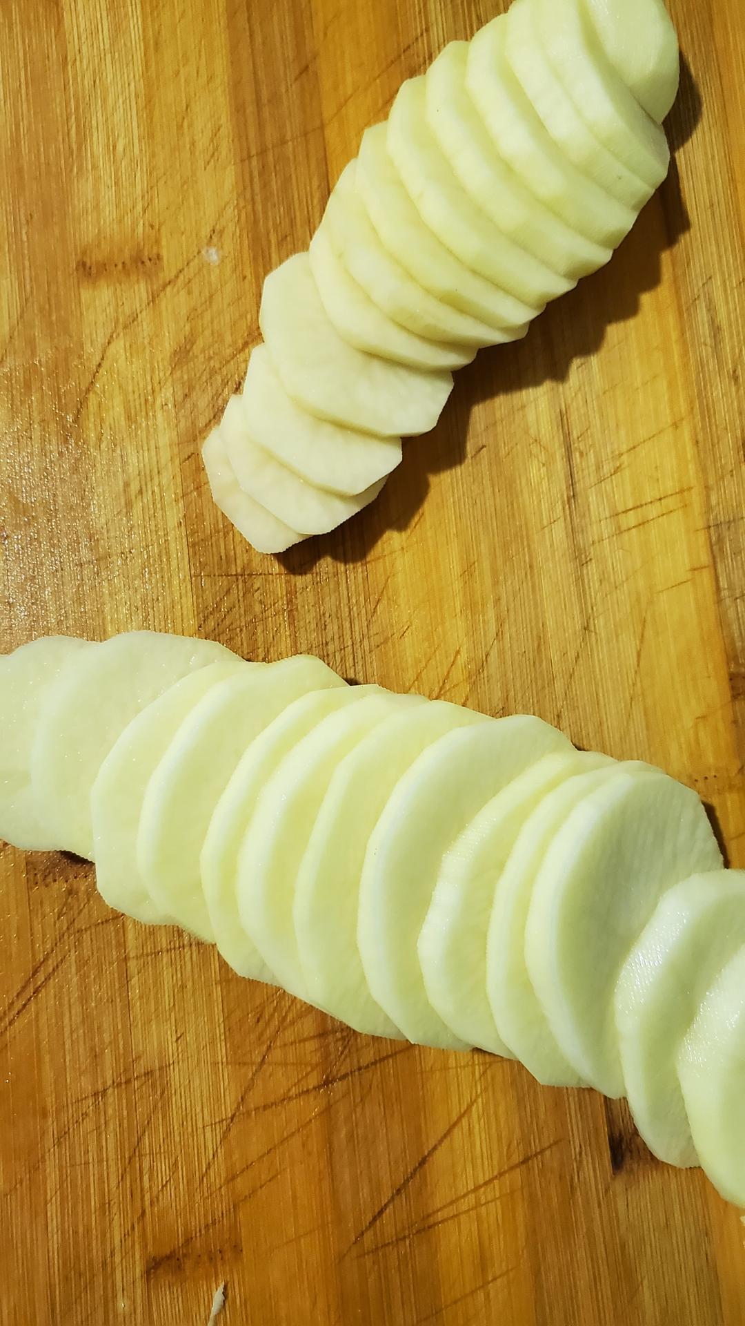 均匀切厚片,有一根筷子的厚度刚好。