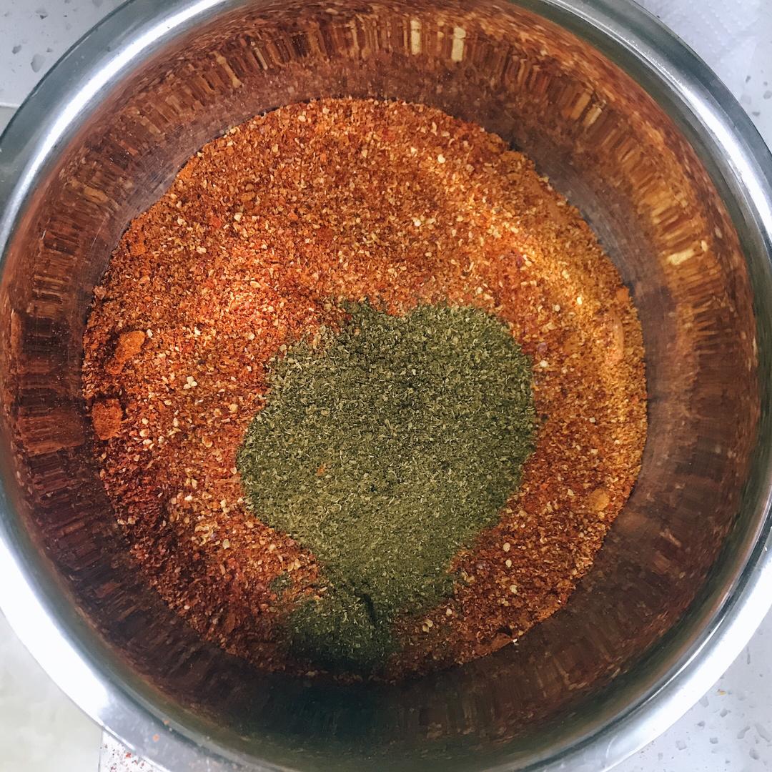 辣椒粉和麻椒粉放在一起搅拌均匀
