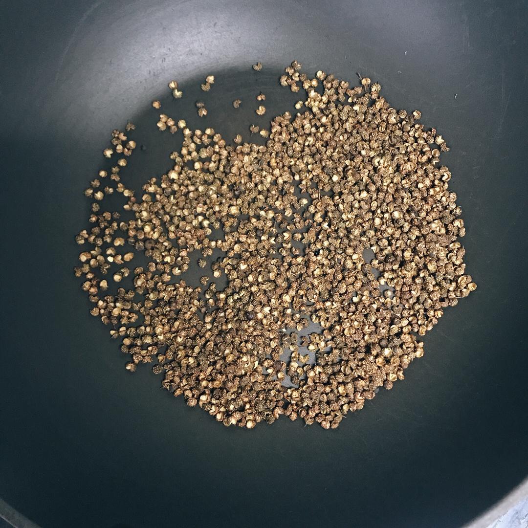 将麻椒放入锅中煸炒出香味备用