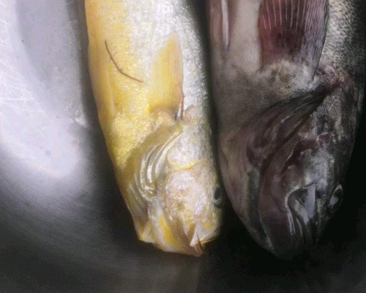 早晨起来就看到楼下一卖鱼小哥,带了一筐筐新鲜的鱼,迫不及待买了两条,一条黄鱼,一条黑鱼。胶东炖鱼,大部分是混炖,就是一锅好多种鱼,单一品种也可以。