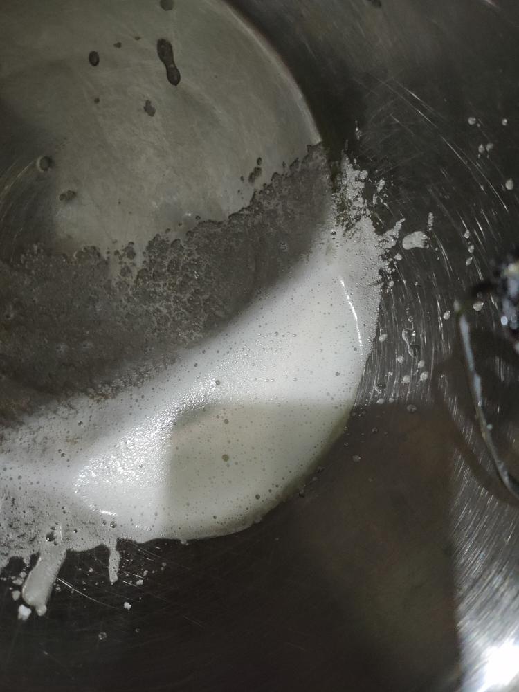 木糖醇 和 蛋清(10克) 混合。搅拌均匀,直到木糖醇溶解到蛋液中。
