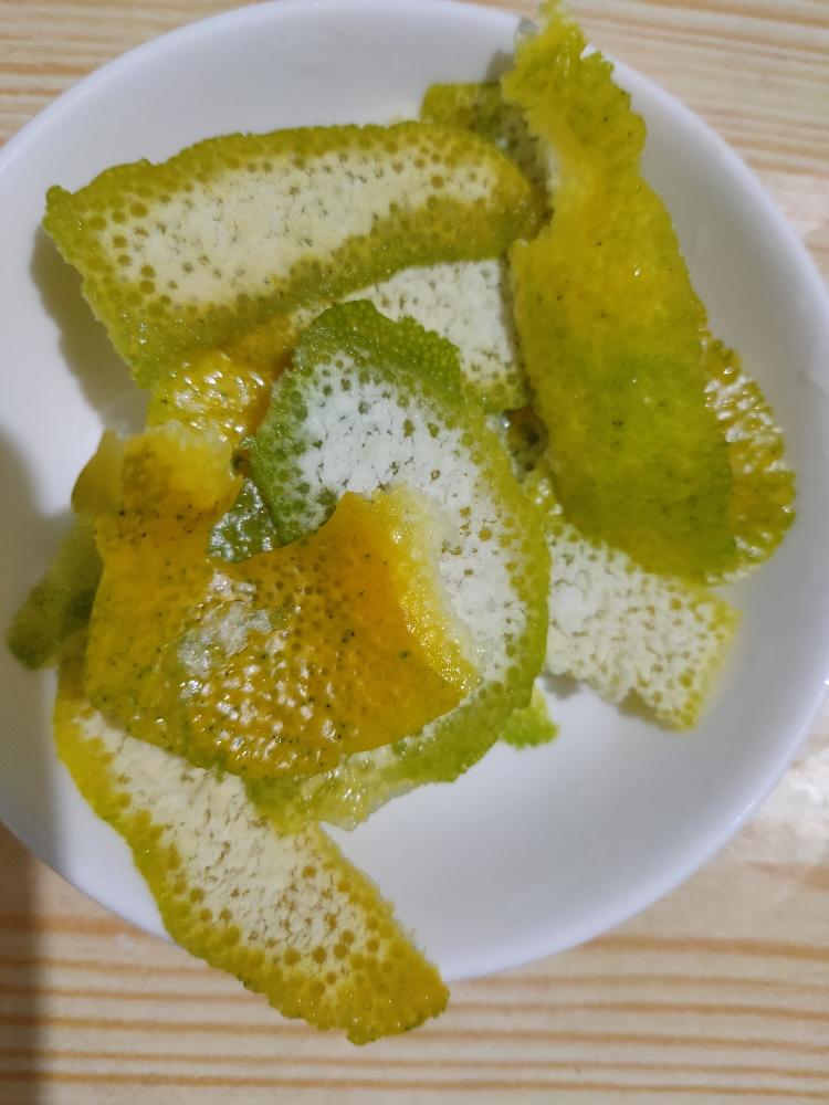 橘皮切碎末。橘皮碎末大小,看个人喜欢。我这里切得非常细碎(,可惜忘了拍照)。