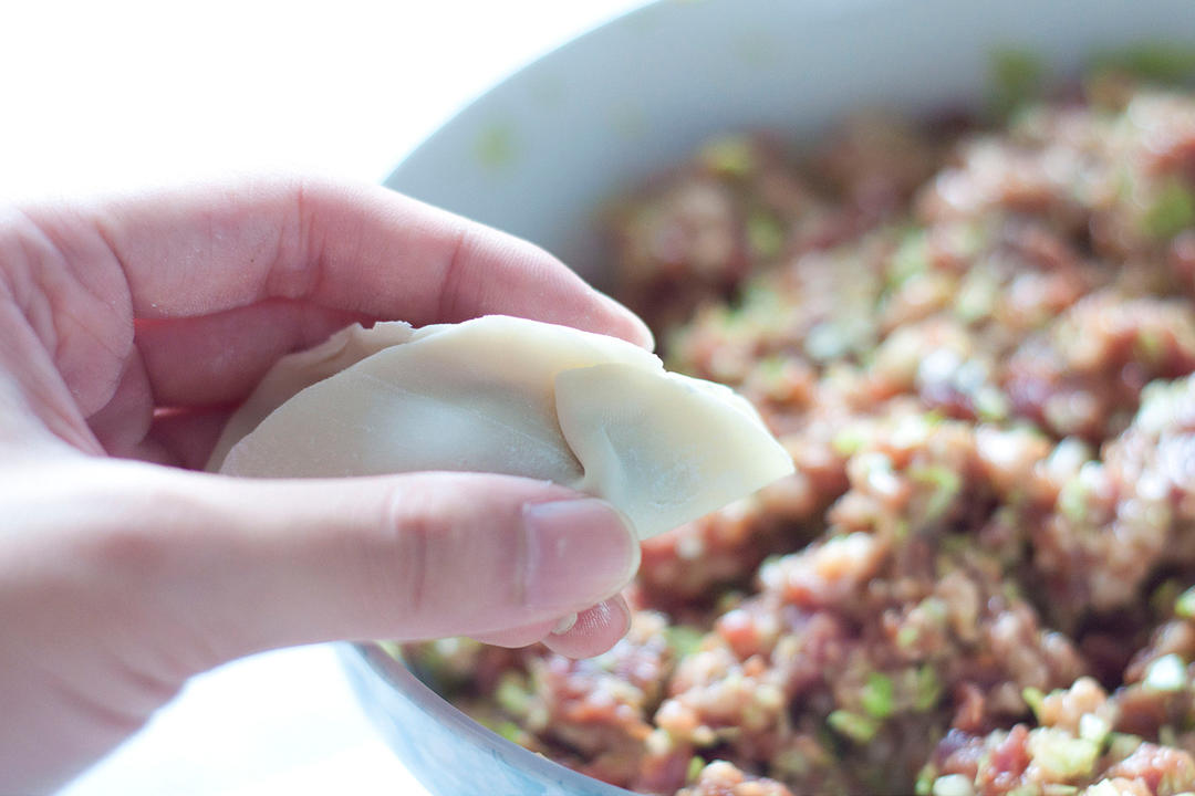 包饺子的过程,实在难以言表,上几张网上找来的过程图充数,大家各显神通,把馅包起来不露馅就好啦!