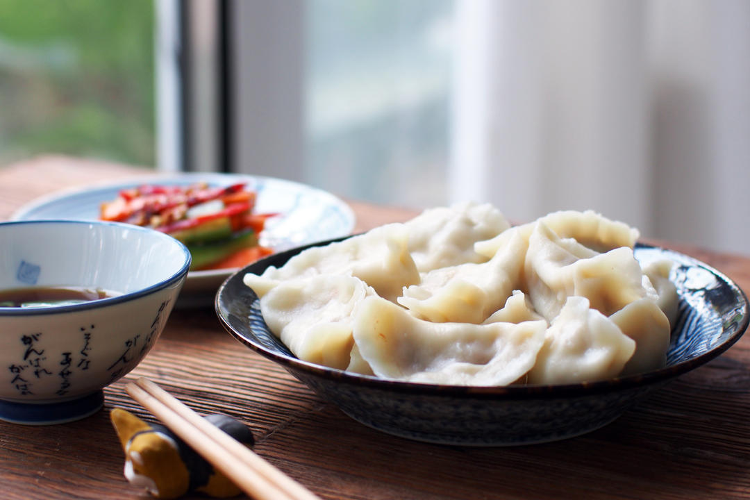 开水下锅,用笊篱轻轻推动,防止饺子粘在锅底。
