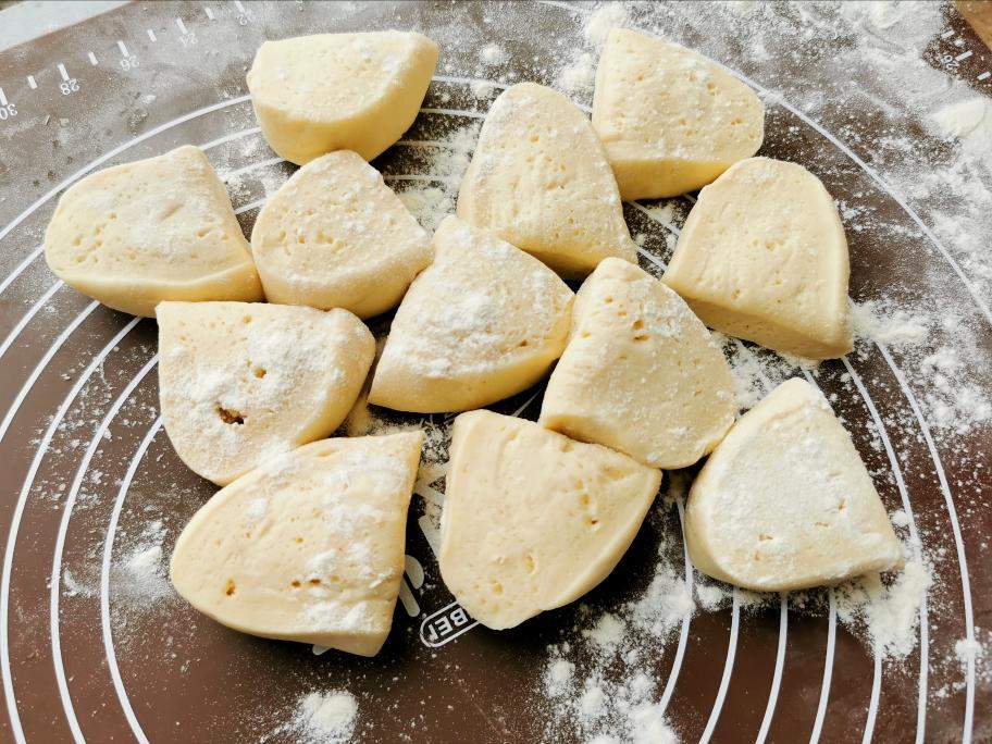 ❣️揉好的面团,切成等大的小剂子,撒上面粉防止粘连,然后用保鲜膜盖住,防止干皮