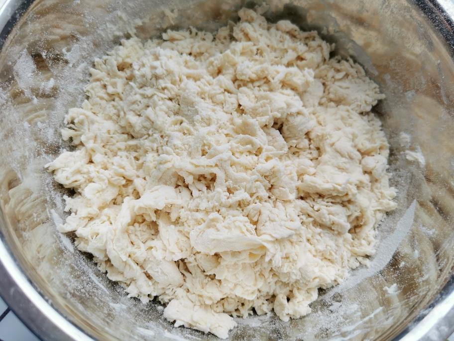 ❣️酵母加到面粉里,然后边加水边搅拌,搅拌成面絮状就可以了