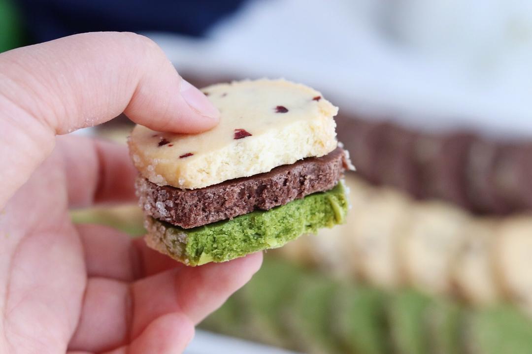 抹茶、巧克力、蔓越莓曲奇饼干