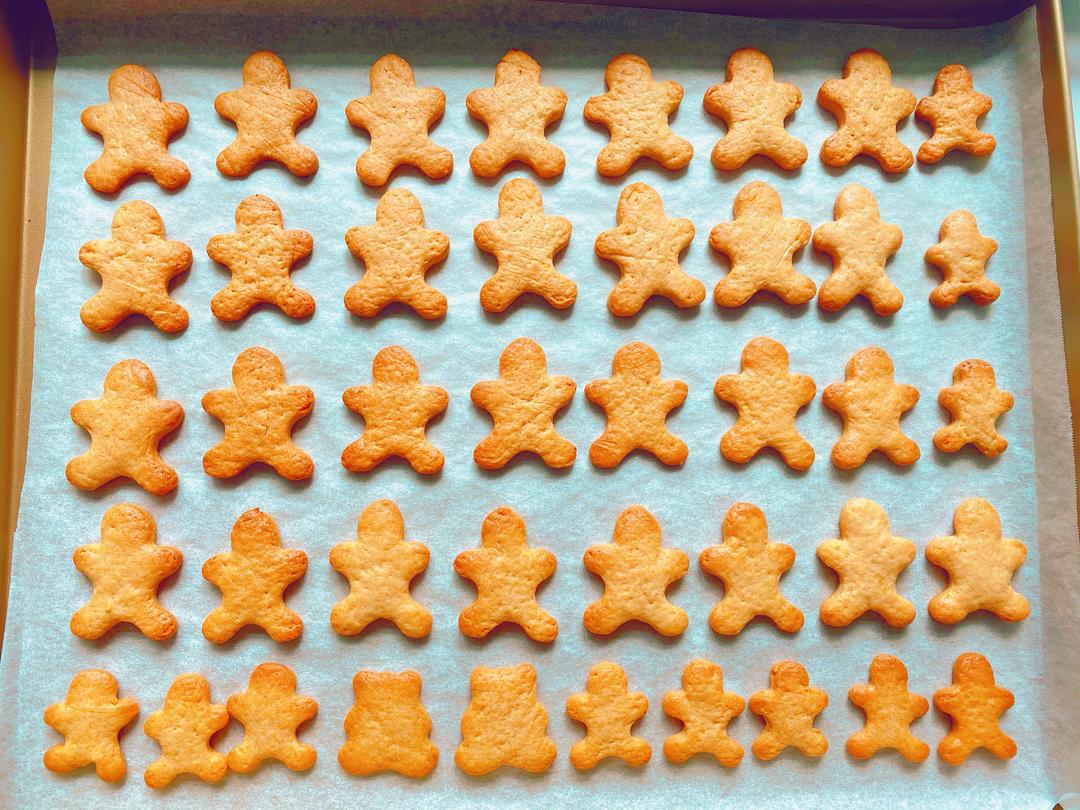 取出后剪开保鲜袋,用模具制作出可爱形状。有间隔摆入烤盘。 剩余的面团再次隔保鲜袋用手和成团,擀平,用模具。 反复这个过程直到所有面团都做好。 烤箱预热4D热风175度。