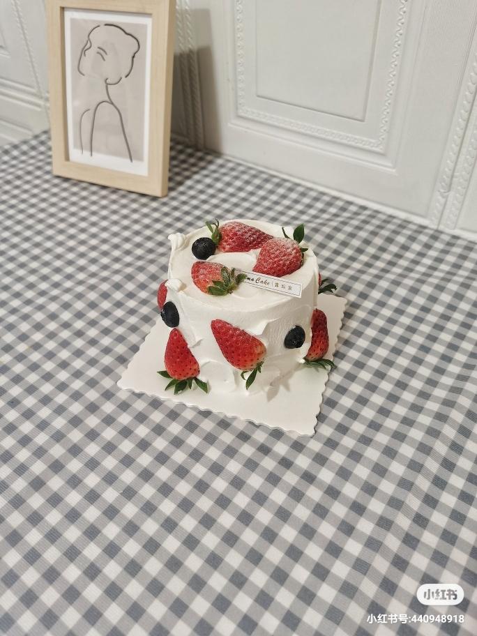 贴上草莓🍓,放上蓝莓装饰,撒上防潮糖粉就完成啦