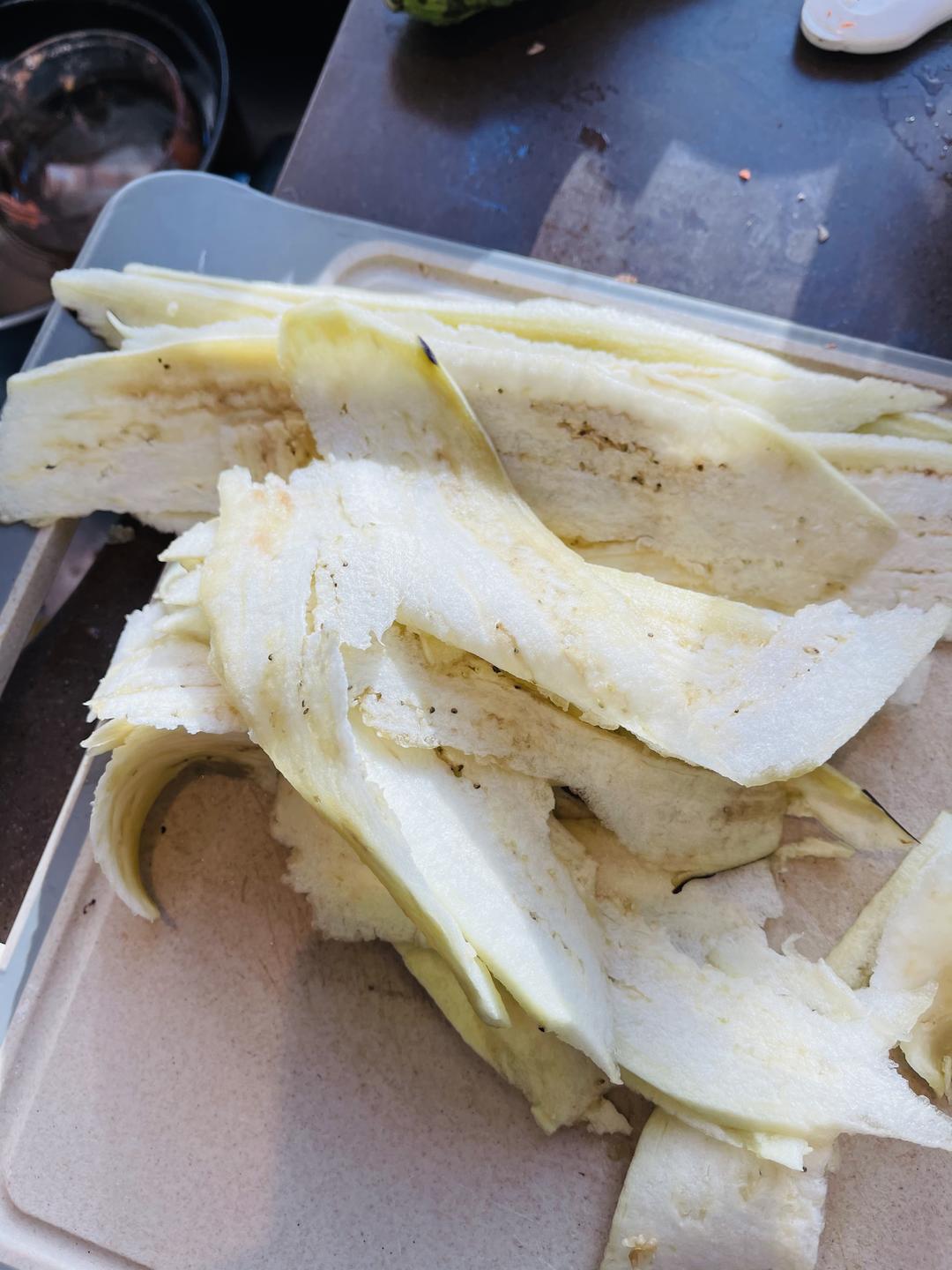 先把茄子削成片,代替意大利面