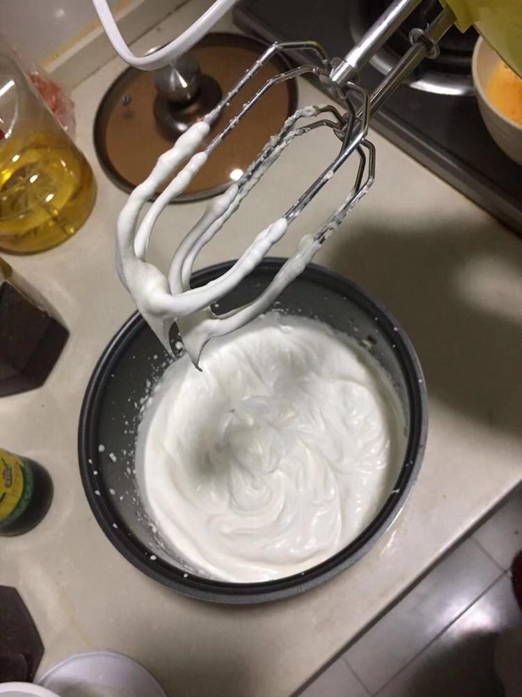 淡奶油打至6-7分发,加入软化好的芝士里面拌匀后加入蛋黄液拌匀后加入20ml朗姆酒