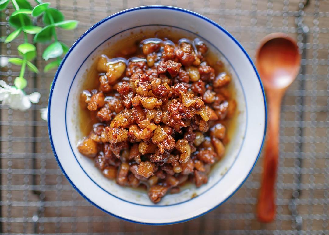 准备浇头。 1.热干面的标配是辣萝卜丁,京东可以买到。 2.受湖南米粉的影响,还会加红油卤水,如果没有可以省略。 3.不加卤水的话,可以加肉哨,肉哨做法下次写。 4.还可以加花生、榨菜丁、酸豆角。