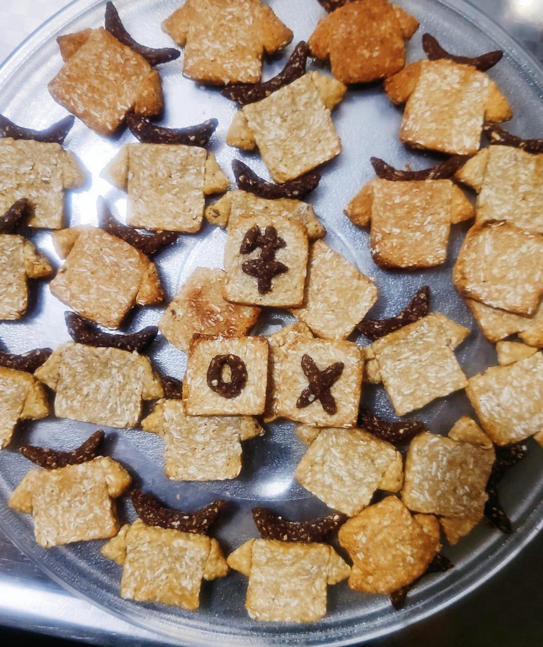 牛头 原色面团 看图,牛头就是方形,可以自己用手塑形,有曲奇模具的可以用方形模具塑形 如果你是先塑形成一个长条然后切片的话,需要先冷冻下,否则无法切整