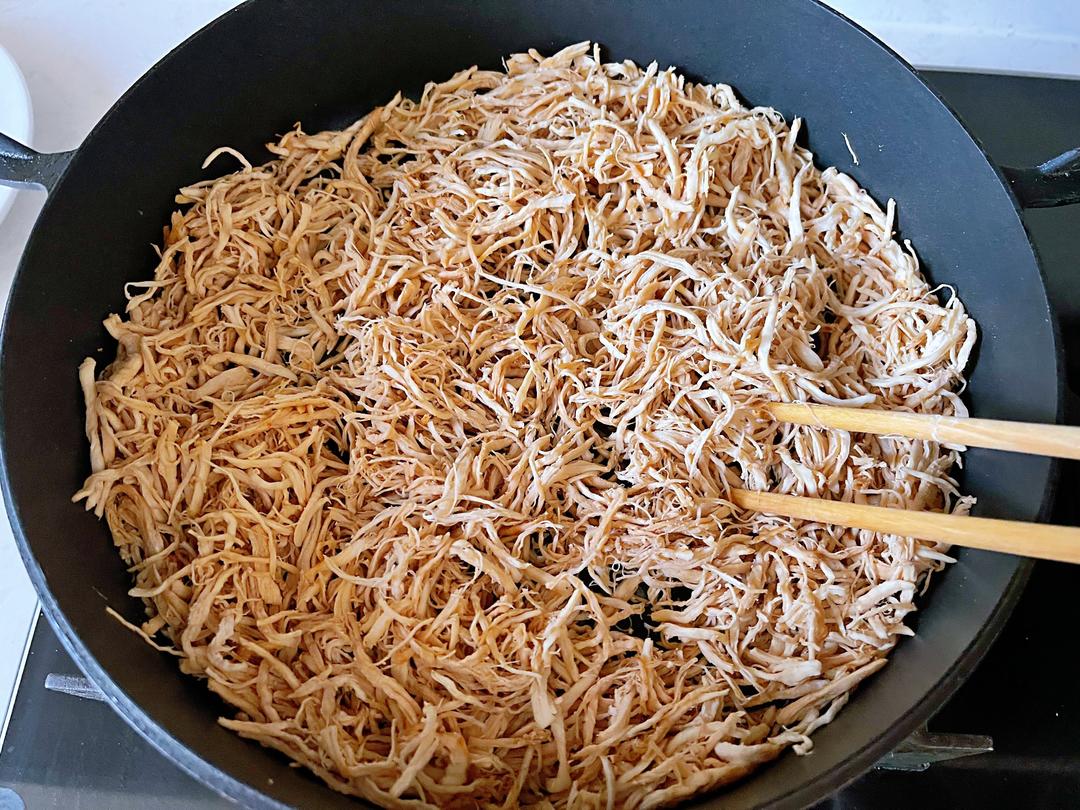 直至鸡丝水份收干即可(个人喜欢带点湿度的)