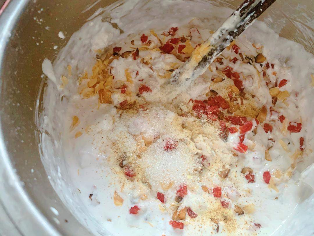 搅拌均匀后调味:盐、胡椒粉和一点点糖