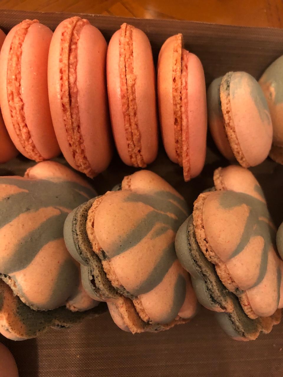 失败论 1.更换为非常干(没油份)粗糙杏仁粉,搅拌蛋白消泡也干。解决办法:和有油份细腻杏仁粉搭配使用1:2,降低成本 2.打蛋白加热的水温度过高,蛋白烫熟过,导致无法消泡,面糊状态不流动