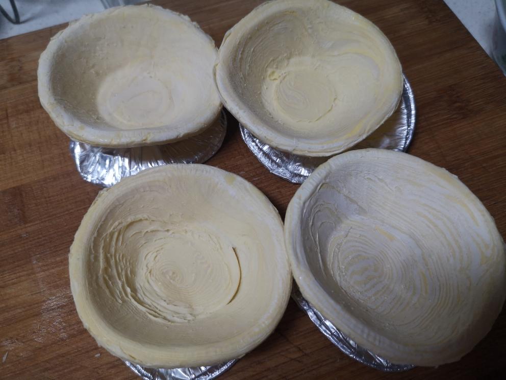 空气炸锅200度预热5分钟,同时把蛋挞皮拿出来抠掉外壳软化2-3分钟;
