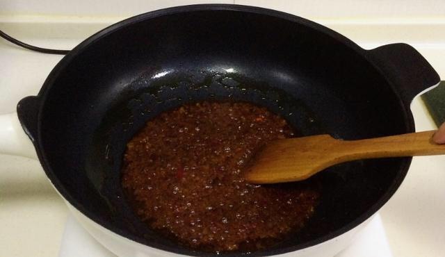 锅里面倒入适量的油烧开,把调料包倒进去开始翻炒,炒出来红油。(调料包:植物油,豆瓣酱,辣椒,食用油,腌渍萝卜,姜蒜,黄酒,味精,白糖,鸡精,香辛料等)
