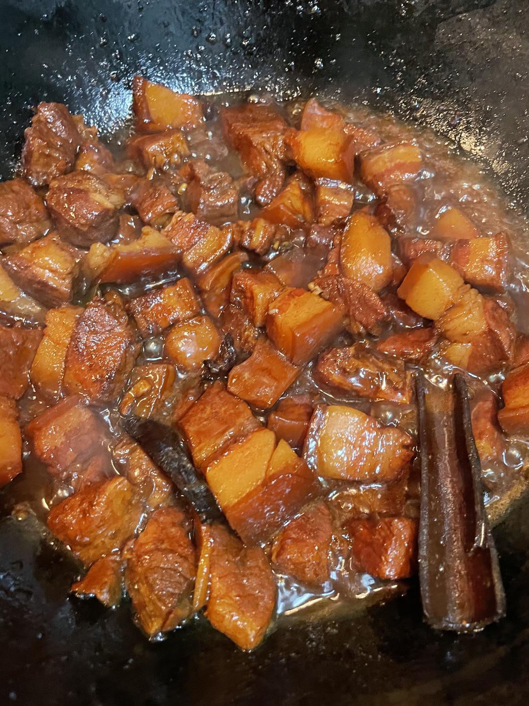汤汁基本收完就可以出锅啦。出锅前如果觉得颜色浅可以再加点老抽,味道淡了就加盐再调味。
