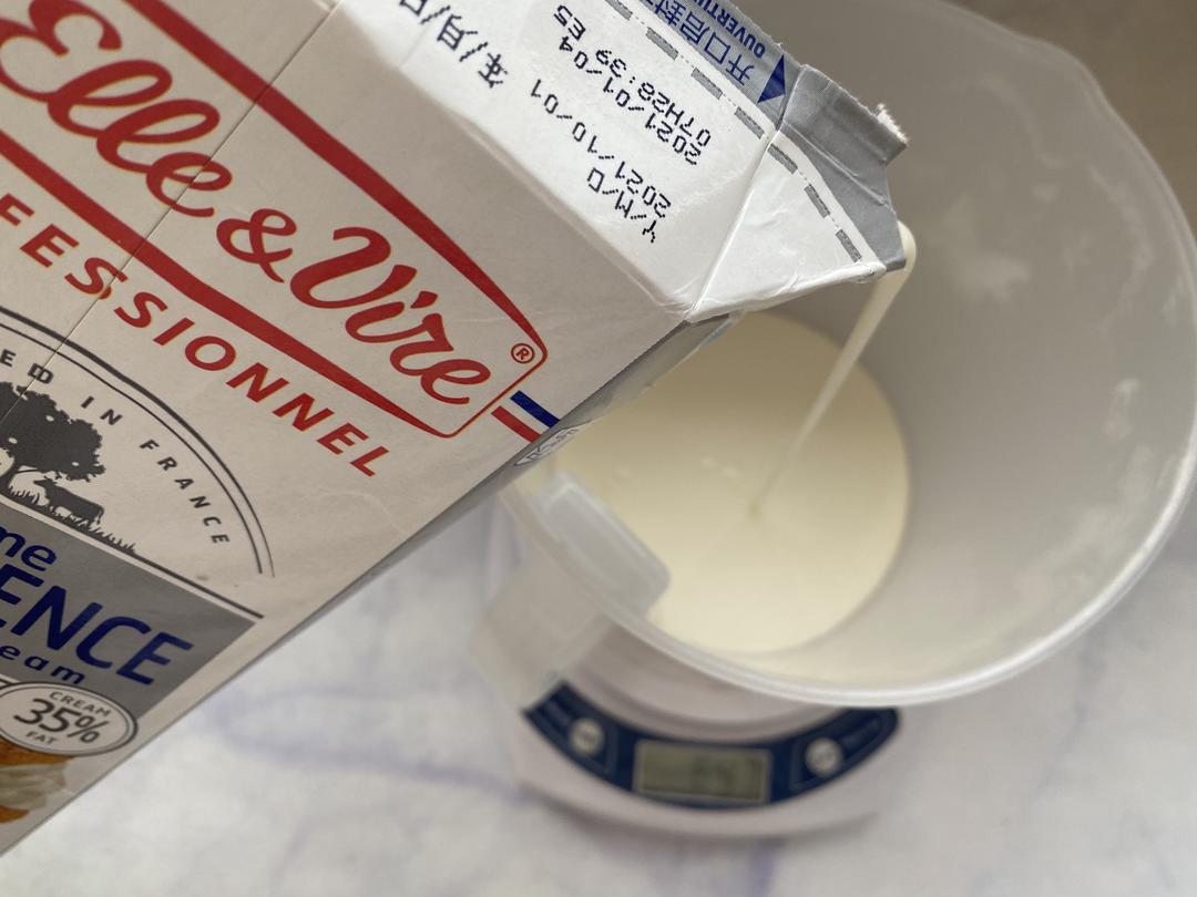 取爱乐薇淡奶油,加入10糖粉打发至打蛋头有小尖角的状态