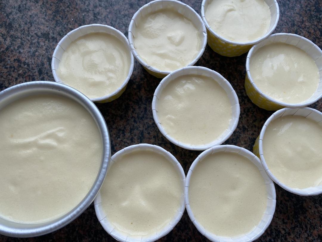 此配方可做一个6寸戚风蛋糕,或者一个四寸+8个小纸杯蛋糕