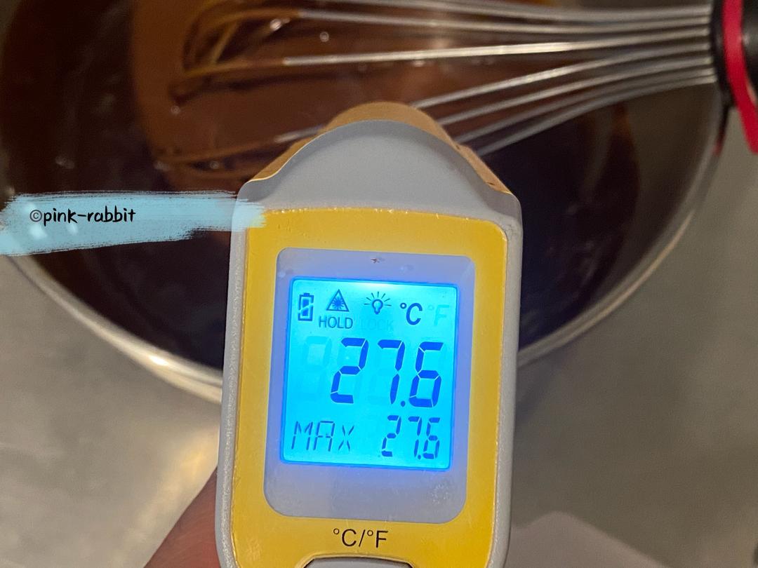 本次混合完的巧克力蛋黄糊的温度27.6℃。