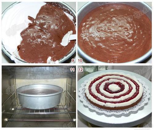 盖一层蛋糕片后,再挤鲜奶油和蓝莓果酱(图9、10)