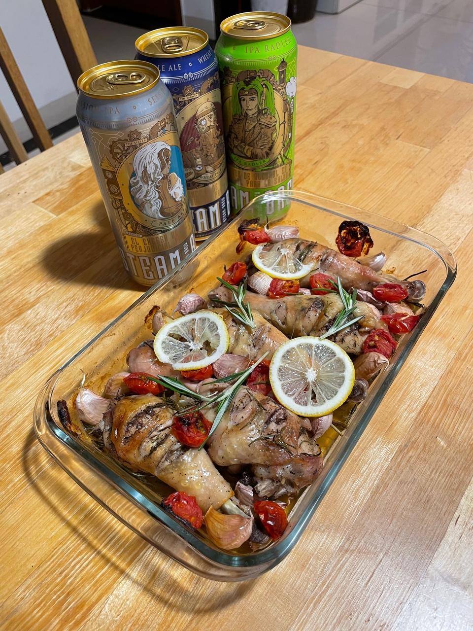 哇哦!没想到烤好的颜值更高吧!小贴士:迷迭香和柠檬是我之前预留好的,摆盘好看!
