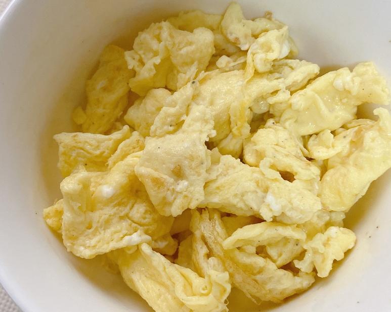两个鸡蛋打散,加点盐和黑胡椒搅匀,打散鸡蛋时挑起来把空气打进去,炒出来鸡蛋更蓬松?