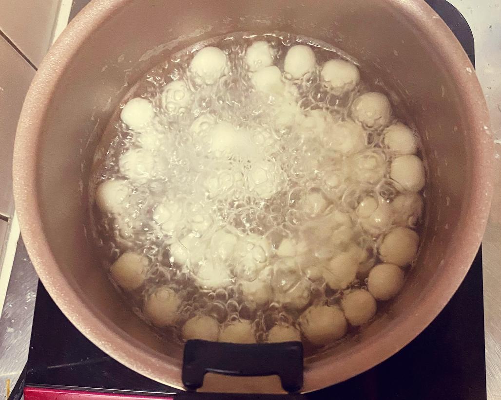 再给上面糯米团掰小,给揉成小颗粒的糯米团。 1,取一个小锅加适量水给它煮沸。加入小糯米团煮。 2,煮至小糯米团浮起就是煮好了。再加两勺红糖,给红糖煮化就可以盛出来了。