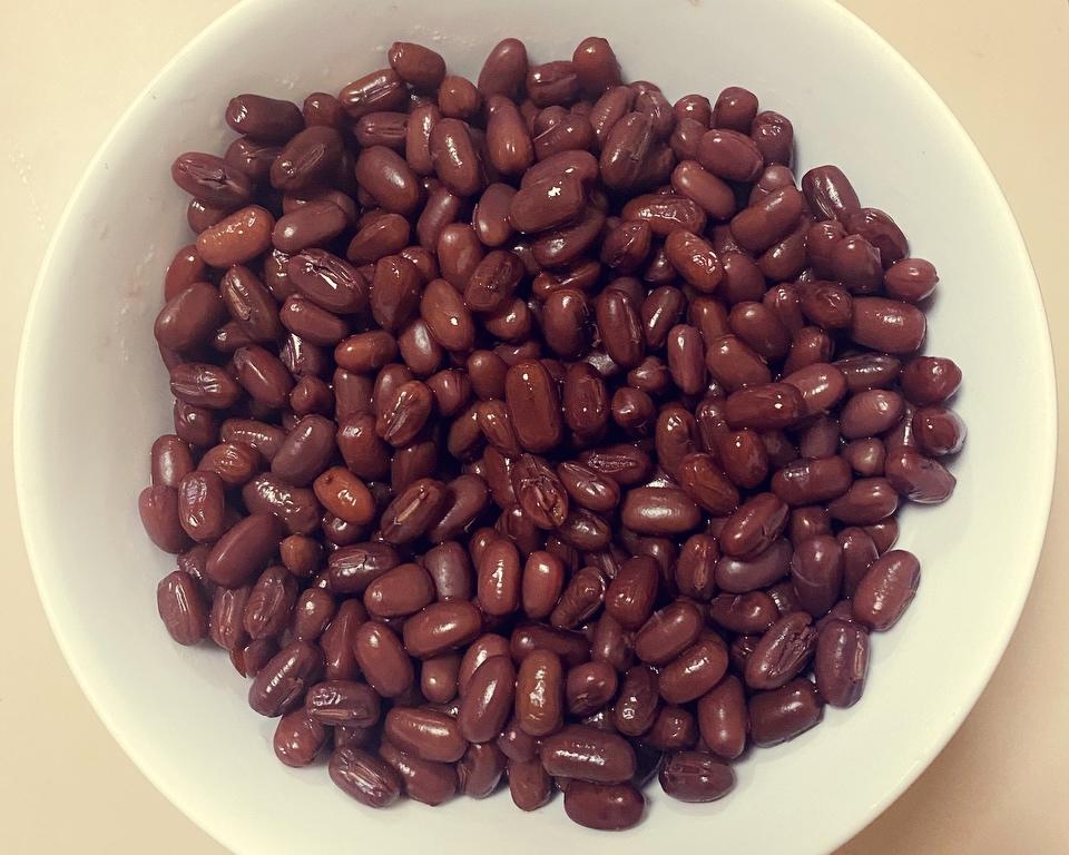 1,红豆加水给它放冰箱提前泡最少一晚。 我是前天晚上泡的,昨晚没做,今天做的,放冰箱倒也坏不了。 2,泡好的红豆,给它加水煮。小火煮到水开,关火盖盖焖半小时左右。锅不热或不太热的时候,再给它开小火煮沸,盖盖焖。重复这个步骤4-5次。 焖的时候,我人是在床上躺着。起来喝水或上厕所的时候顺便把锅加热,再又回床上躺着去了。 3,自己挑几粒试下,熟了就加点糖或蜂蜜,给它盛到碗里备用。