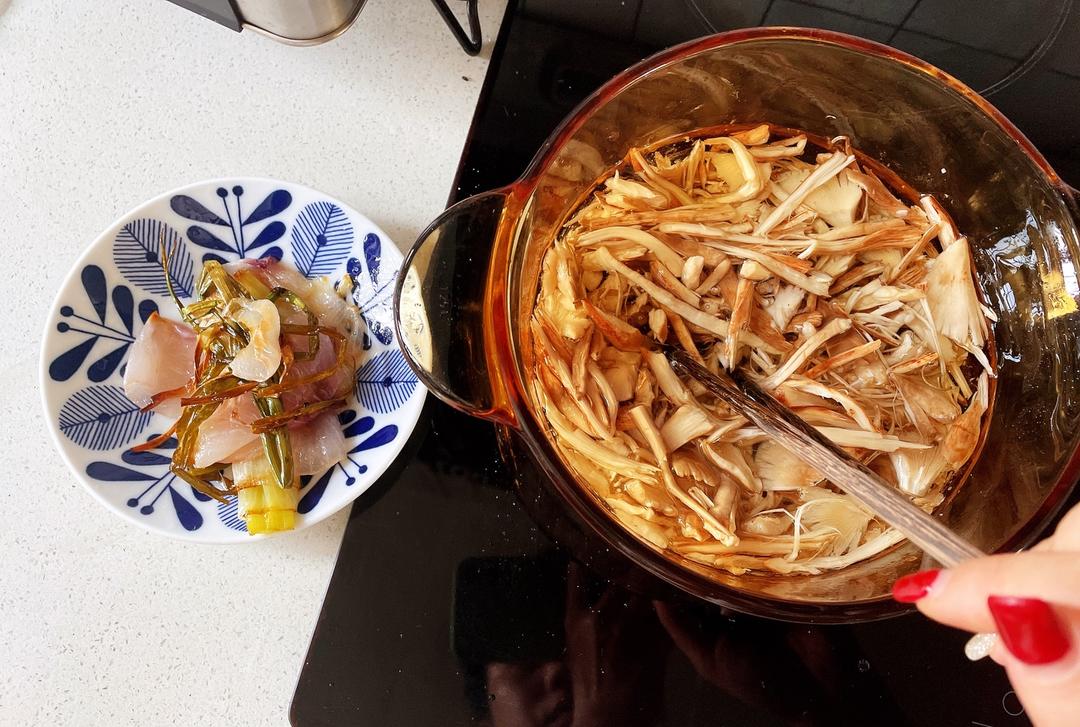 加入鸡枞,也是最小火30分钟,不时用筷子轻微翻动下。我家是电陶炉可以定时,我一般用3到4的档定时30分钟就可以,基本不用看火,如果是明火需要多休息下。