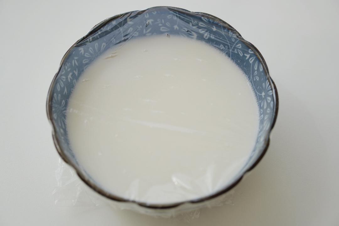 碗中加入牛奶和玉米油充分搅拌乳化,乳化好的冰皮就不会有油滋滋的感觉