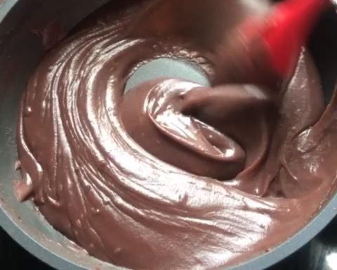 刚开始馅较稀,要用刮刀快速划圈搅拌,冲破气泡,避免气泡爆开烫到;