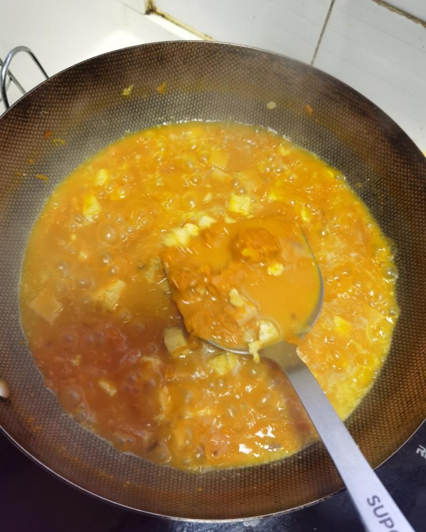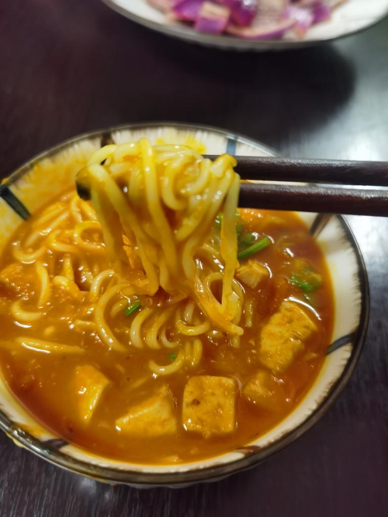 我喜欢这种汤汁浓稠的面条,吃下去暖烘烘的。如果不喜欢特别浓稠,可以多加些水。真的很好吃。今天吃了两碗。