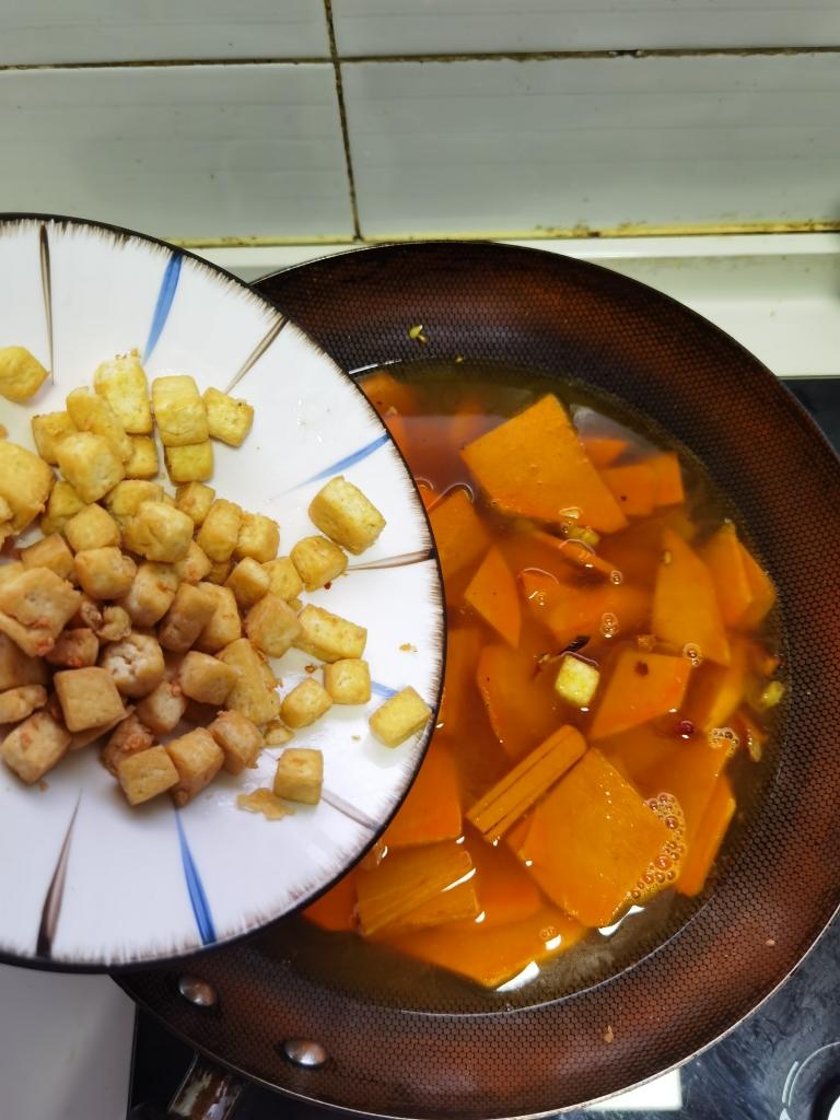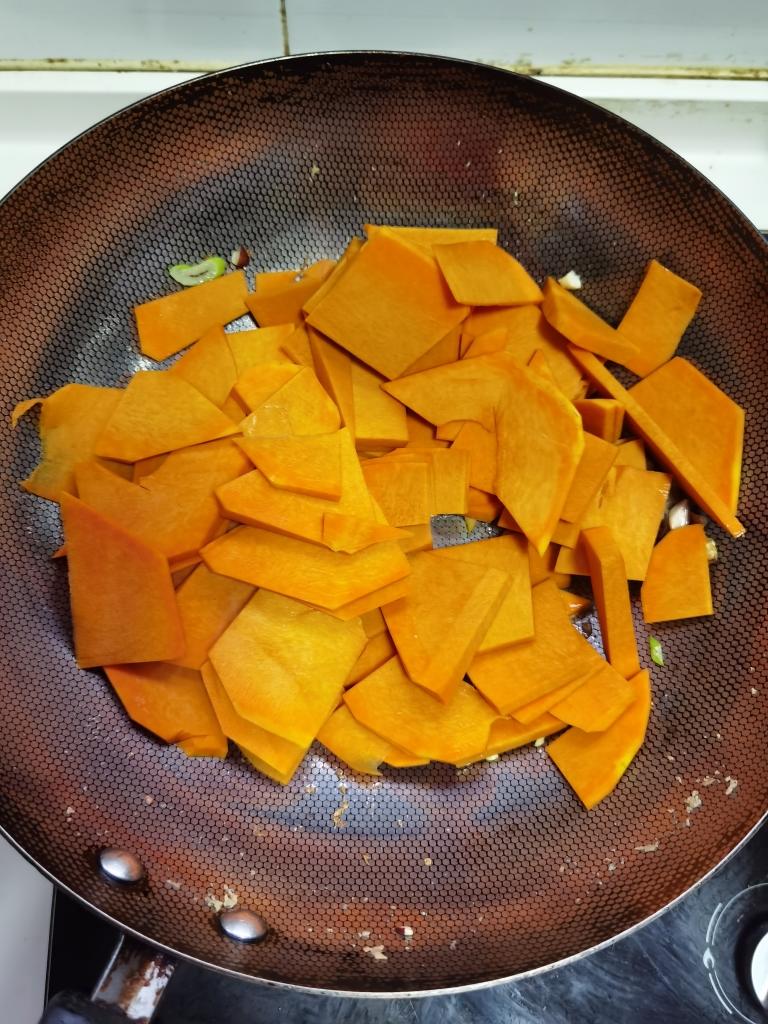 倒进南瓜片。