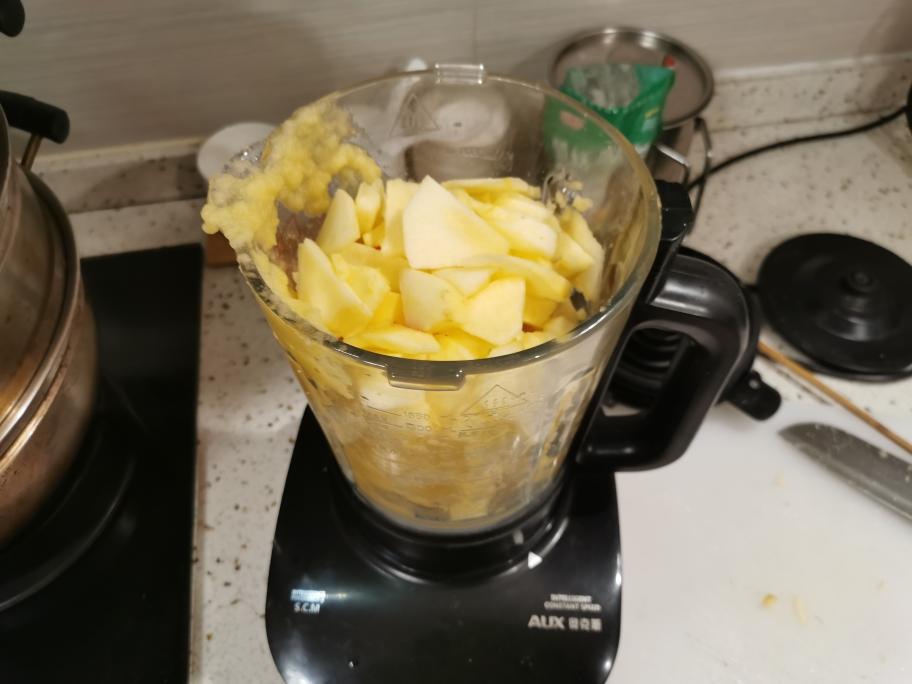 苹果切片,加少量清水一起放搅拌机打成泥。
