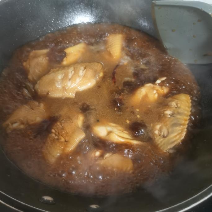 开水是刚才烧好的那一壶水,不要加冷水 然后加入 5勺生抽 1勺老抽 4颗冰糖 可以适当加1勺耗油不加也行 搅拌均匀后小火炖上40分钟