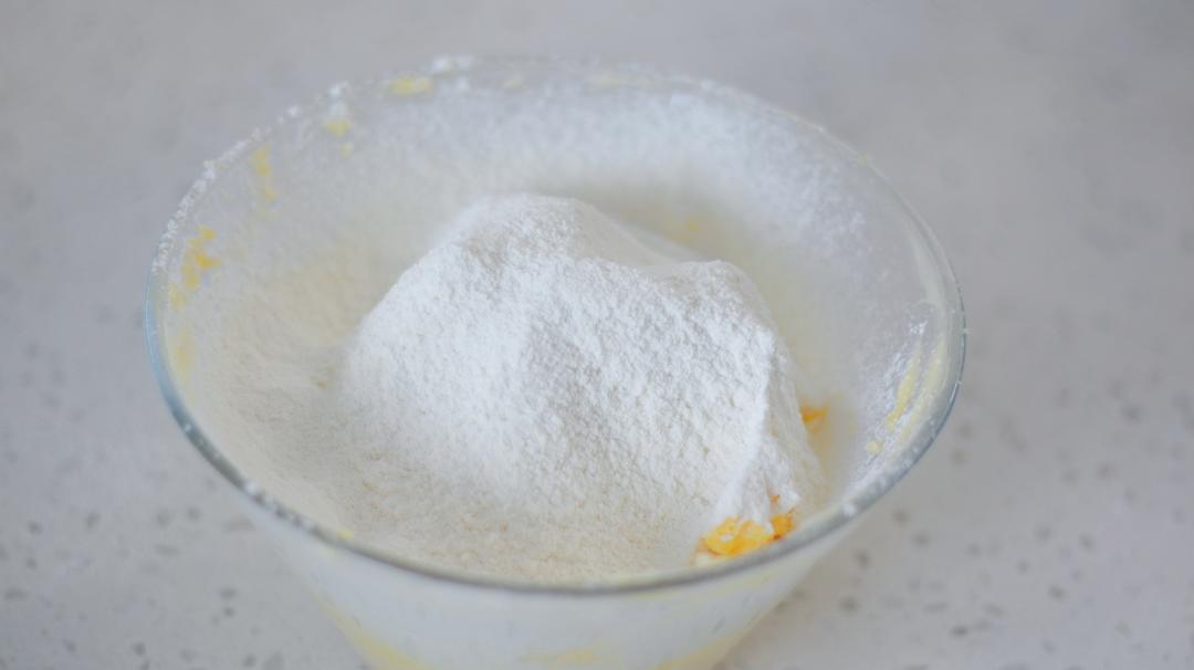 低粉和玉米淀粉混合筛入黄油糊
