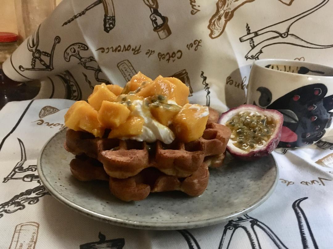 配上浓稠的希腊酸奶和芒果、百香果,或者任何自己喜欢的水果、枫糖浆、蜂蜜、果酱,口味任你发挥
