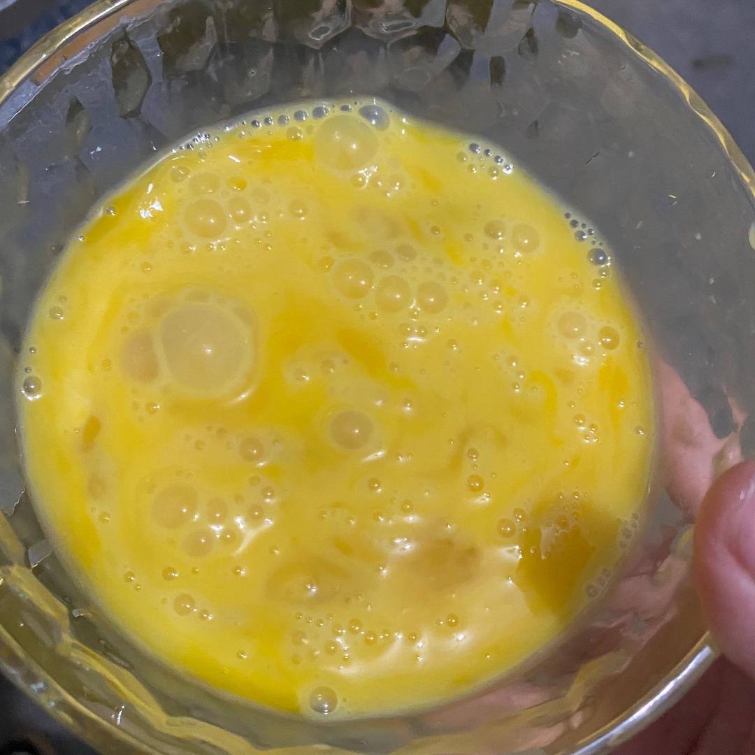 鸡蛋放一点点盐,先炒出来备用。小孩喜欢吃鸡蛋就放多一点。