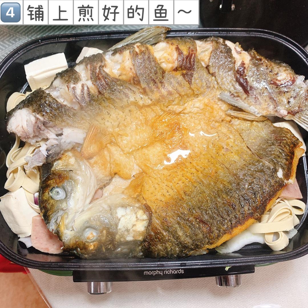 ❶配菜根据个人喜好选择就好~ ❷煎鱼时可以在油锅里撒一点盐,以免粘锅;鱼要等煎定型再动铲子,以免脱皮 ❸口味重的朋友,在炒料汁时候可以加点豆瓣酱炒出红油,煮料汁时加盐、胡椒粉等调料~ ❹吃完鱼后还可以煮肥牛卷、蟹棒、热干面等等,香喷喷超好吃,一点都不浪费哦~ ❺开吃前浇的热油香油请随意~