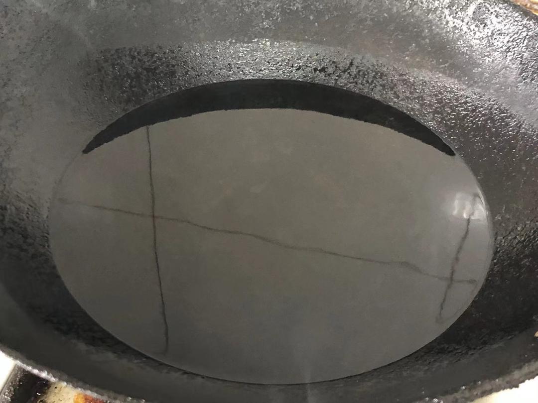 残渣打捞干净之后转大火,将油温重新升高到7成热(200°~210°)关火。