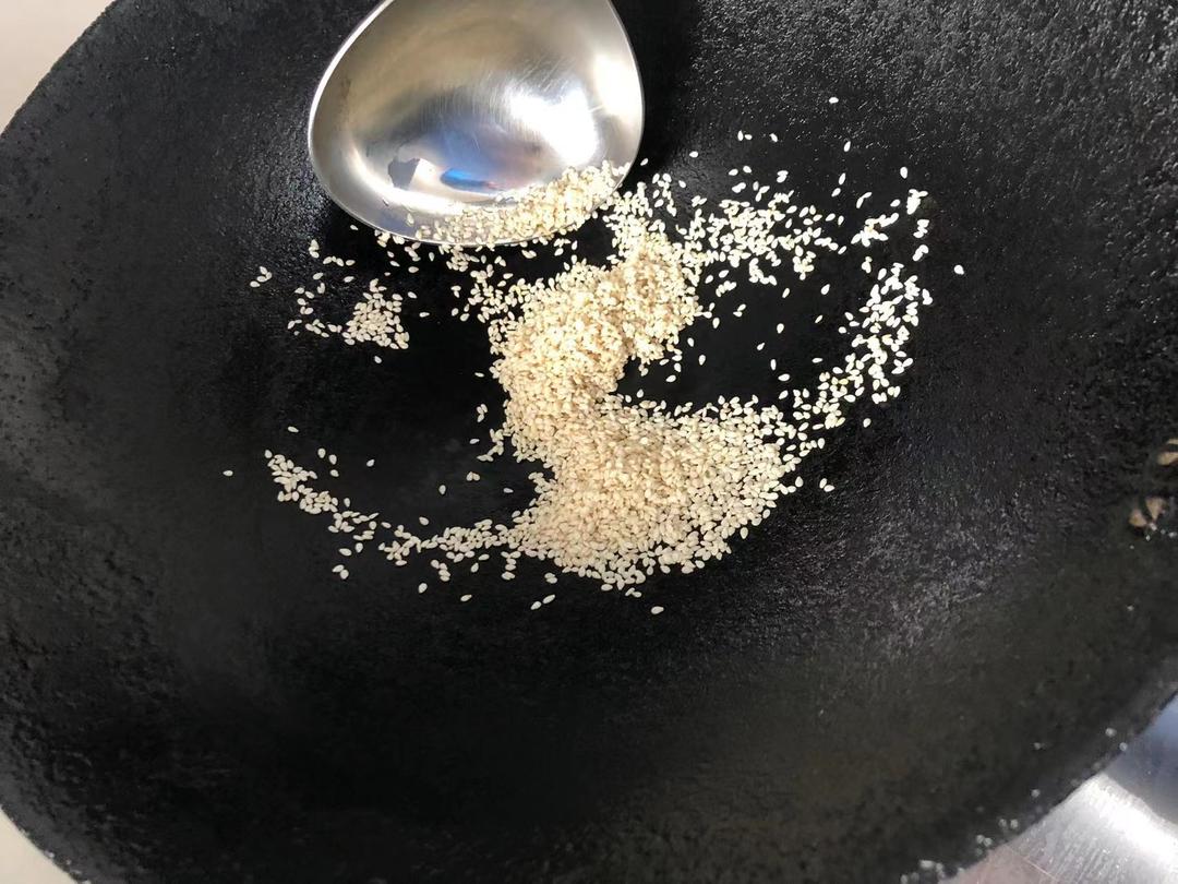 白芝麻一小把下锅炒香炒黄拿出备用。