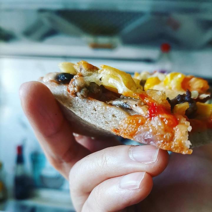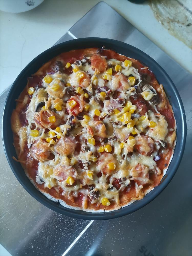 特写。无麸质的,和普通披萨肯定不好比,将就吃吃打打牙祭是可以的。