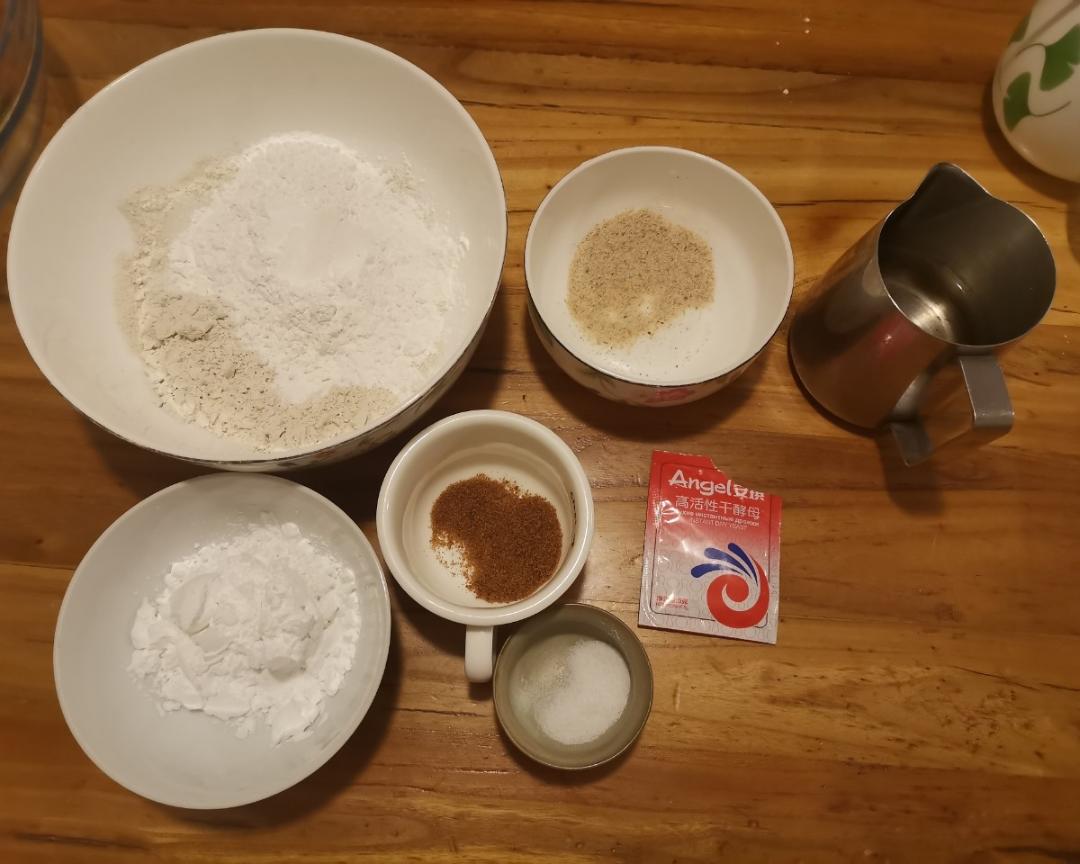 酵母+温水+糖,混合均匀备用