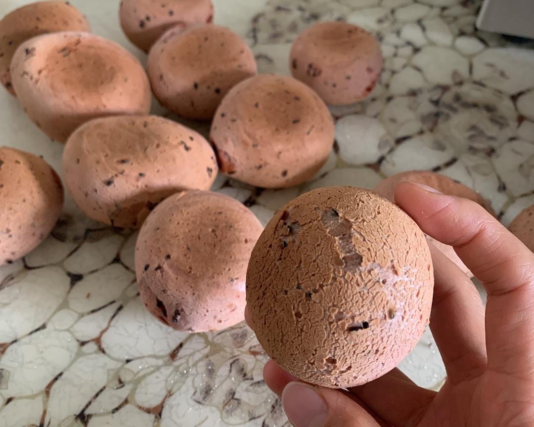 烤盘铺油纸,烤箱预热170°。从大面团揪下一个小面团在手心揉圆一点放到烤盘里,我都是一只手带手套操作,这个时候用另一只手心抹一点黄油不带手套一起搓已经基本不粘手了,因为有了油润感~~~每个小面团之间留适量的间隙,因为烤了会膨胀。