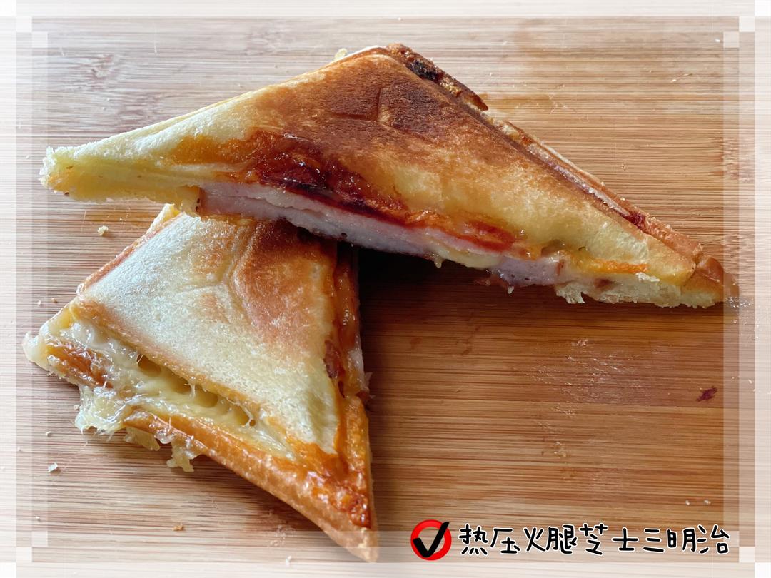 🔺第411道→ 热压火腿芝士三明治 吐司2片,各涂抹一层黄油。 火腿2片,芝士1片,芝士碎适量。 〔组合〕吐司+火腿+芝士片+芝士碎+火腿+吐司,放进热压三明治机。 ⭐️ 芝士片和芝士碎选用不同的芝士,风味不同会使口感更丰富有层次。 ⭐️ 使用热压机做三明治,内馅不要放太多太厚,加热过程中会从机器里吐出来…