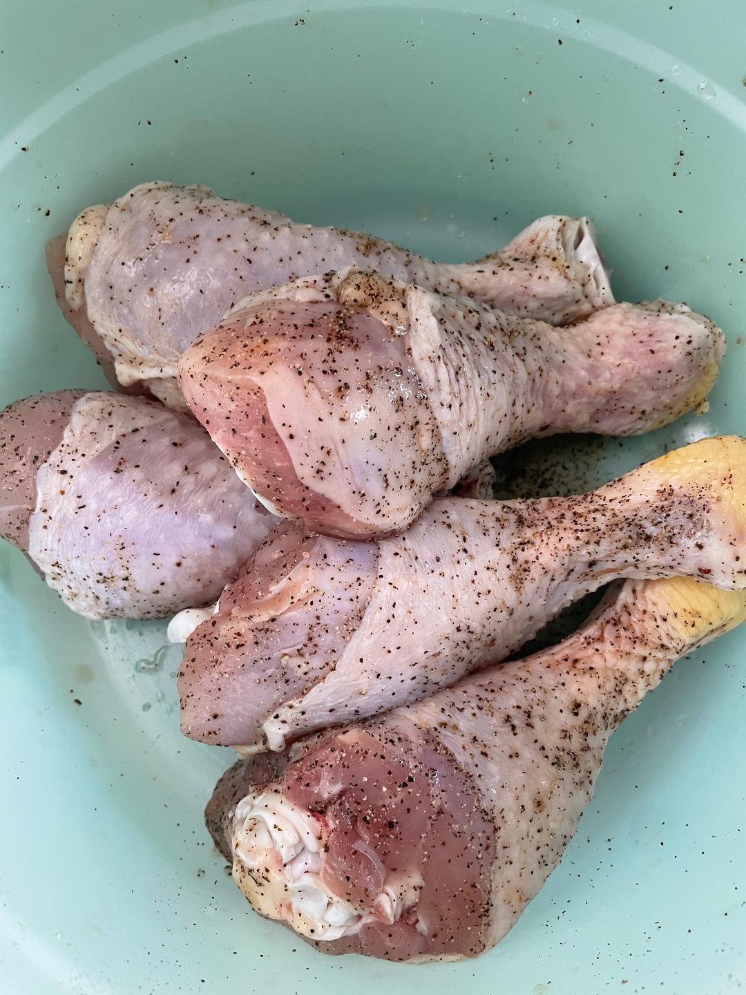 鸡肉上抹盐和胡椒