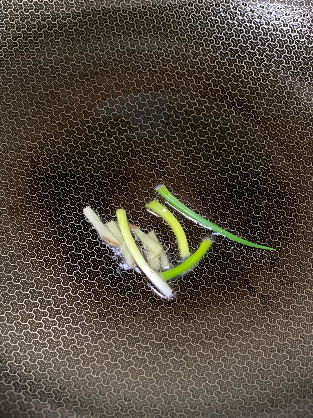 3.油烧热,加入葱姜丝。20秒就行了。